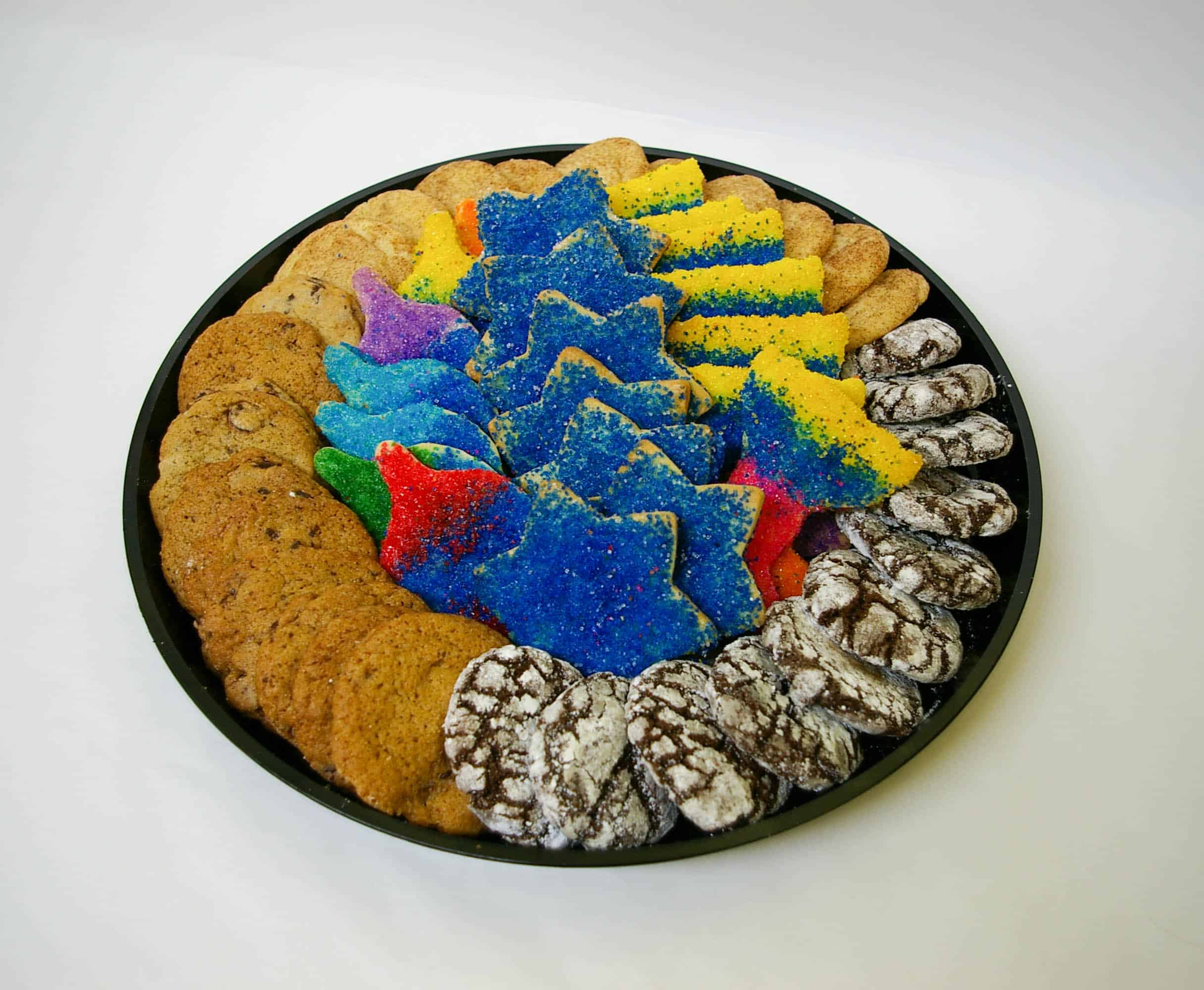 1 pound of assorted chocolate chip, crinkle, and snickerdoodle cookies with 1 lb of Hanukkah, Christmas, or Winter cookies. Nut free.